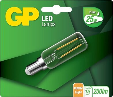GP Batteries LED Afzuigkaplamp E14 2.5W 250lm - T25 Buis LED
