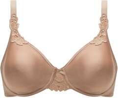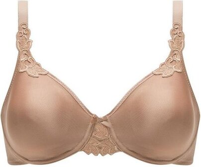 Beugelbh van Chantelle uit de serie 'Hedona'. De bh draagt comfortabel, biedt steun en is onzichtbaar onder kleding. Deze bh geeft een natuurlijke welving, perfectioneert het silhouet en is hierdoor geschikt voor elke buste. In de grotere cupmaten heeft deze bh een licht minimizer effect, wat ervoor zorgt dat de buste optisch een cupmaat kleiner wordt. Middenvoor en bij de schouderbanden bevindt zich een borduursel. De elastische schouderbanden zijn verstelbaar en de bh sluit op de rug met 2 haakjes en 3 oogjes.