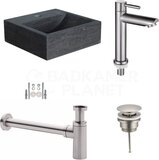 Badkamerplanet Sovana Fonteinset - Natuursteen - 30x30x10 cm - Incl. Kraan, Afvoer en Sifon