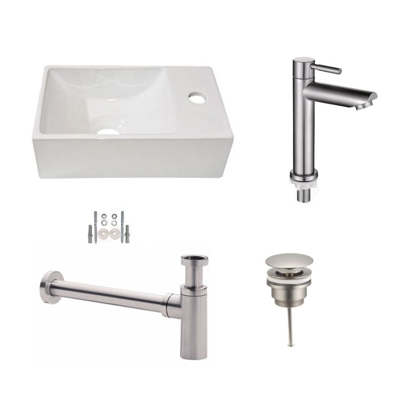 Badkamerplanet Fonteinset Keramiek New Wonder - 30x18x9cm - Wit - Bidetkranen