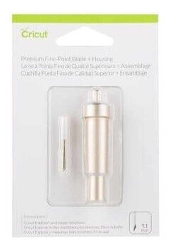 Made from German carbide steel, the Premium Fine-Point Blade™ resists wear and breakage for long-lasting precision. \n\nStay sharp and creative with the Premium Fine-Point Blade! It delivers long-lasting precision cutting, so you’re always ready for impressive DIY. Made from German carbide steel, this versatile blade was specially designed to make the most intricate cuts with your Cricut machines. It resists wear and breakage to beautifully cut most light- to medium-weight materials, including cardstock, vinyl, iron-on, poster board, and more. For results you’ll always love, replace Premium Fine-Point blades when needed. \n\nFor use with the Cricut Maker, Explore, Explore One, Explore Air, and Explore Air 2 machines. Use with gold Premium Fine-Point Housing or silver Fine-Point Housing.