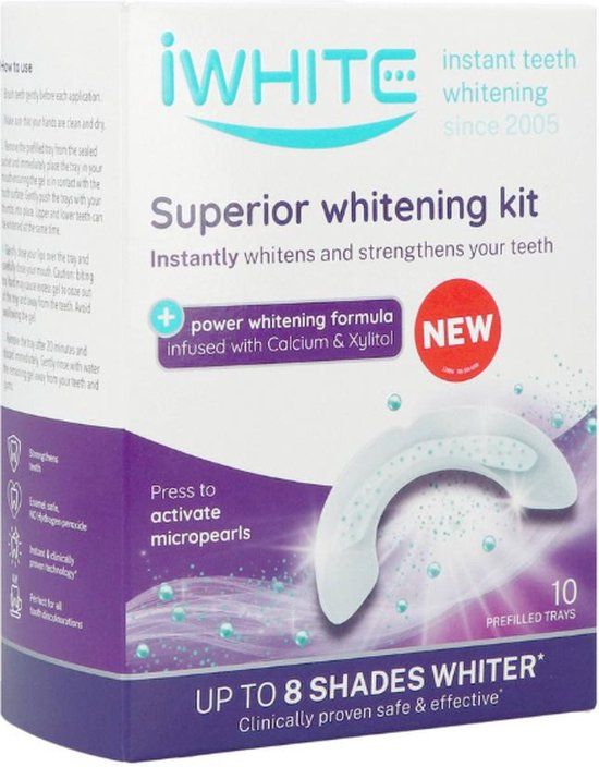 iWhite Superior Whitening Kit maakt gebruik van de nieuwe en unieke whitening technologie die de tanden direct tot wel 8 tinten* witter maakt en de tanden versterkt.