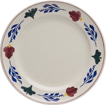 Het typische Boerenbont decor is al meer dan een eeuw het meest beroemde aardewerk servies van Nederland. Dit bord heeft een doorsnede van 27cm en is geschikt als dinerbord.