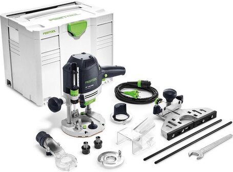 - Festool OF 1400 SYSTAINER SYS 4 T-LOC Spantang Ø 8 mm Spantang Ø 12 mm Zijaanslag met fijninstelling Kopieerring Ø 30 mm Afzuigkap boven Spaanvanger Bedieningsgereedschap