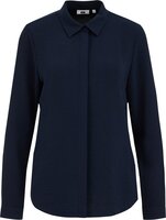 Een regular fit blouse van gerecycled polyester met een dessin en blinde knoopsluiting. Het model heeft een normale kraag en lange mouwen.