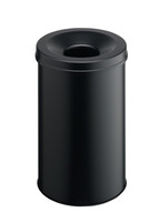 Ronde, metalen afvalbak met vlamdover. Beschermt tegen brand doordat de luchttoevoer wordt afgebroken en vlammen dus geen zuurstof krijgen. Vervaardigd uit staal met een krasbestendige laag epoxy polyester. Capaciteit: 30 liter Afmetingen (H x O): 492 x 315 mm.