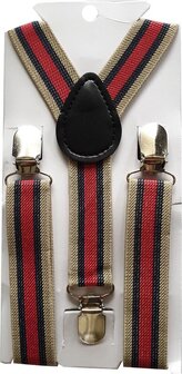 Fako Fashion® Kinder Bretels - Streep - Khaki/Blauw/Rood - 65cm - Unisex - Bretels