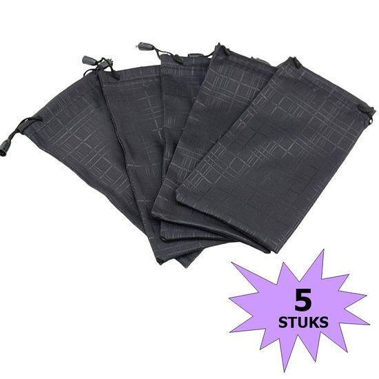 In dit soepele en zachte microvezel zakje kunt u uw (zonne)bril eenvoudig opbergen. De microvezel binnenzijde voorkomt krassen op het glas. Het hoesje is eenvoudig te sluiten door middel van een sluitkoord met plastic knopjes. Voor deze prijs ontvangt u 5 hoesjes. De afmeting van het hoesje is 18x9cm.