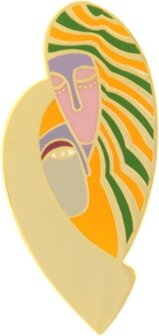 Behave® Dames Broche art deco groen oranje emaille. Grootte 5 cm.