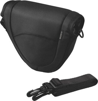 - Compacte, stijlvolle draagtas voor de ultracompacte NEX-camera, de reservelens en de accessoires\n- Biedt ruimte voor camerabehuizing voorzien van een lens van 18-55 mm\n- Extra ruimte voor een reserve 'pancake'-lens van 16 mm\n- Extra opslagruimte voor een reservebatterij, geheugenkaart en de clip-on-flitser van de camera\n- Buitenvak voor lensdop\n- Kan met de bijgeleverde riem over de schouder worden gedragen\n- Kan tevens met de bijgeleverde riemlus op heuphoogte worden gedragen