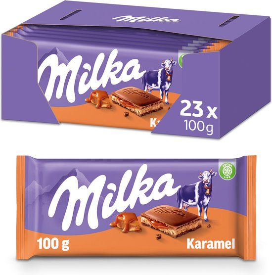 Milka Chocolade Reep Karamel - Doos 23 x 100g - Chocoladerepen en Tabletten - Voorraad - Verjaardag Cadeau Vrouw of Man - Geschenkset voor Man en Vrouw