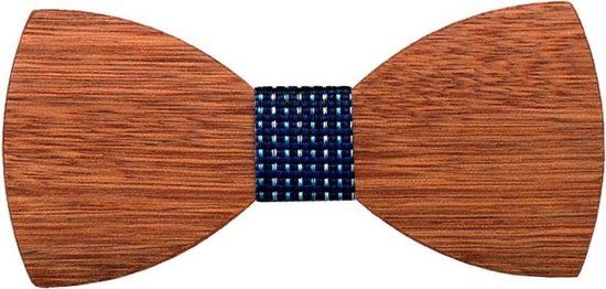 Een houten vlinderdas die u doet onderscheiden van de rest. Deze strik is gemaakt van hout in combinatie met een stukje blauwe gestreepte stof. Aan de achterzijde zit verstelbaar elastiek met een click-sluiting. De gladde afwerking en het stoffen middenstuk maken dit stukje fashion tot een geweldige keuze om je te onderscheiden en de show te stelen. De afmeting van de strik is 120x55mm.