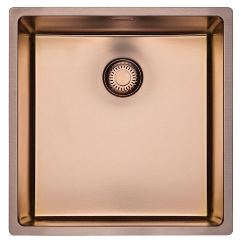 Gekleurde rvs spoelbak New York 40x40 Comfort met binnenradius 10 mm, geschikt voor onderbouw, vlakinbouw en vlakopbouw.