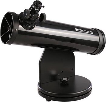 ToepassingDe is een krachtige en eenvoudige telescoop. Zodra de telescoop op een vlakke ondergrond geplaatst wordt is het gebruiksklaar. Door de Dobsonmontering kan de telescoop eenvoudig links- en rechtsom bewegen alsook naar boven en beneden. Wanneer de juiste positie bereikt is kan dit vastgezet worden met de handige vergrendelknoppen.