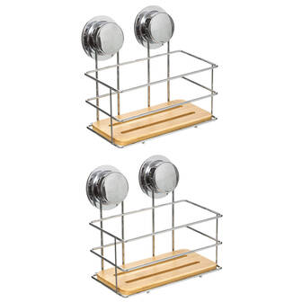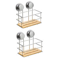 5five Set van 2x Doucherekje Hoek Metaal/Bamboe - 19 x 12 x 18 cm - Bruin - Donno's