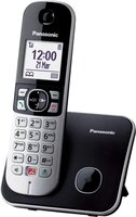 Deze Panasonic KX-TG6851NLB is een enkele draadloze DECT-telefoon in klassiek zwart, met hoge audiokwaliteit, handsfree bellen en een verlicht toetsenbord.