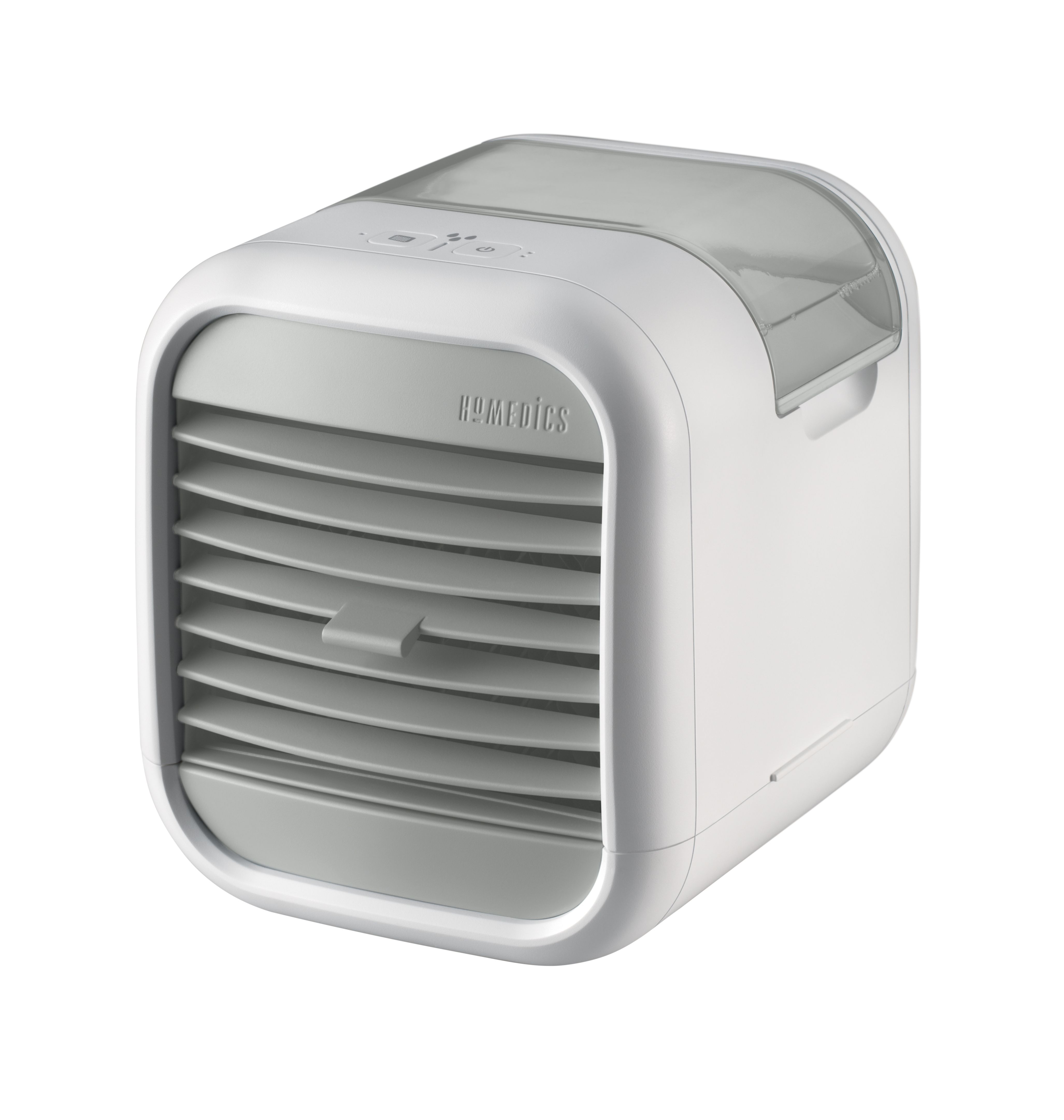 Now you can take personal comfort anywhere you go with the HoMedics MY CHILL™ Personal Space Cooler 2.0. It provides a four-foot cooling area that lowers the temperature of your personal space by up to 12 degrees, and is a perfect addition to your dorm room, office, bedroom — anywhere the thermostat can’t keep up with your comfort level.\n\nThe MY CHILL™ was smartly designed to be all natural, environmentally friendly, and energy-saving. Simply add water, turn it on, and notice a refreshing difference almost immediately.\n\nIt features 2 speeds, an adjustable vent, and Clean Tank Technology to keep it mold- and mildew-free. Plus, our 2.0 model comes with a helpful latch to keep the top and bottom of the unit secure.\n\nSee how the MY CHILL™ 2.0 can make your life a little more comfortable.\n\n- Cools your personal space up to 12 degrees\n- Environmentally friendly - uses no ozone depleting refrigerants\n- Energy-saving - uses very low energy consumption\n- 4 hour run time\n- 4 foot cooling area\n- 2 speeds\n- Adjustable vent\n- Improved water distribution\n- Indicator light when out of water\n- built-in latch to secure top to bottom\n- Replace cooling cartridge indicator light\n- Clean tank technology helps protect the tank from mold and mildew