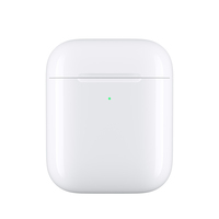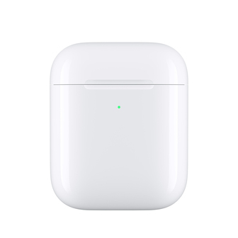 Om je AirPods op te laden, hoef je ze alleen maar in de nieuwe draadloze oplaadcase te doen en op een oplaadmat te leggen. Aan het ledlampje op de voorkant van de case kun je zien dat je AirPods worden opgeladen. En als er geen oplaadmat in de buurt is, kun je ook opladen met een Lightning-connector. De draadloze oplaadcase is geschikt voor alle generaties AirPods, en je kunt je AirPods er meerdere keren mee opladen.