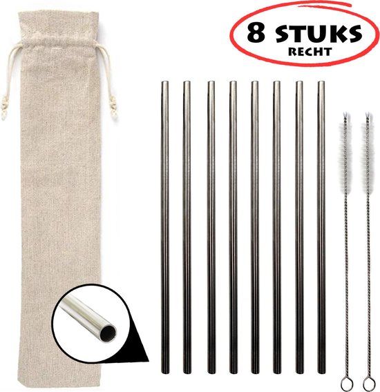RVS rietjes (8 recht) herbruikbaar - Roestvrijstaal - Zilver - Drinkrietjes en roerlepels