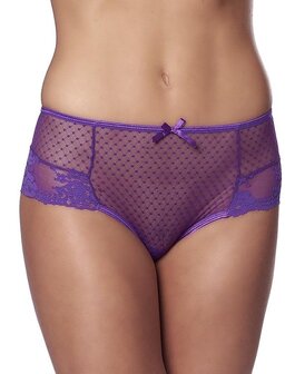 Elegante slip van een luxe kanten stof. Voorzien van open achterkant en afgewerkt met een mooi rijglint.