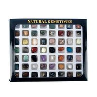 Verschillende trommelstenen. Op elke steen zit een sticker geplakt met de naam van de steen, in het Engels.- Afmetingen: 1-1.5 cm