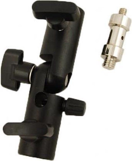 De beugel kunt u voor diverse oplossingen gebruiken. Een veel voorkomende combinatie is het gebruik in combinatie met uw cameraflitser, met deze beugel, een HS15 hot shoe (artnr. 292093) en een paraplu. U kunt zo uw cameraflitser als studioflitser inzetten.