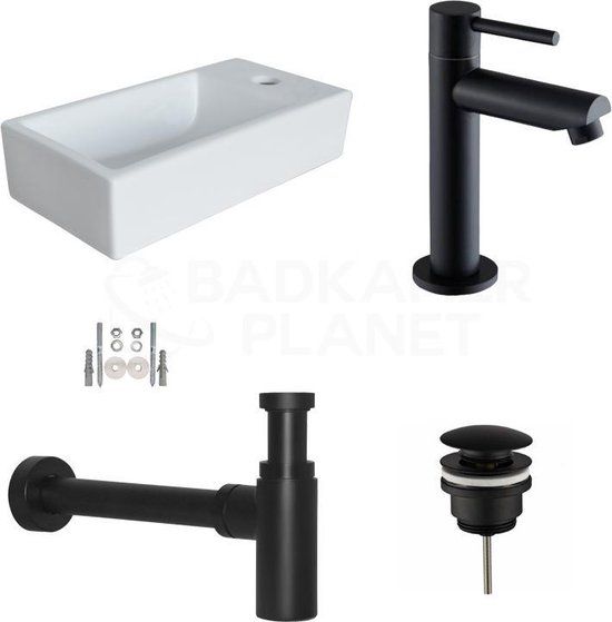 Sani Royal Paso - Fonteinset - Keramiek - Mat Zwart - 40 cm - Incl. Kraan, Afvoer en Sifon - Fonteinen