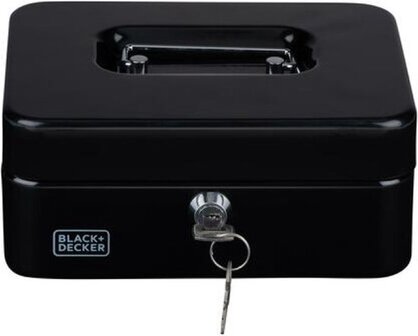 Geldkistje of geldkluisje, 2-laags model, met een slot en 2 sleutels in de kleur zwart gemaakt van sterk staal. De kluis met een muntbakje biedt een praktische en veilige oplossing om uw waardevolle spullen georganiseerd en beschermd te houden. Afmeting: 20 x 16 x 9 cm.