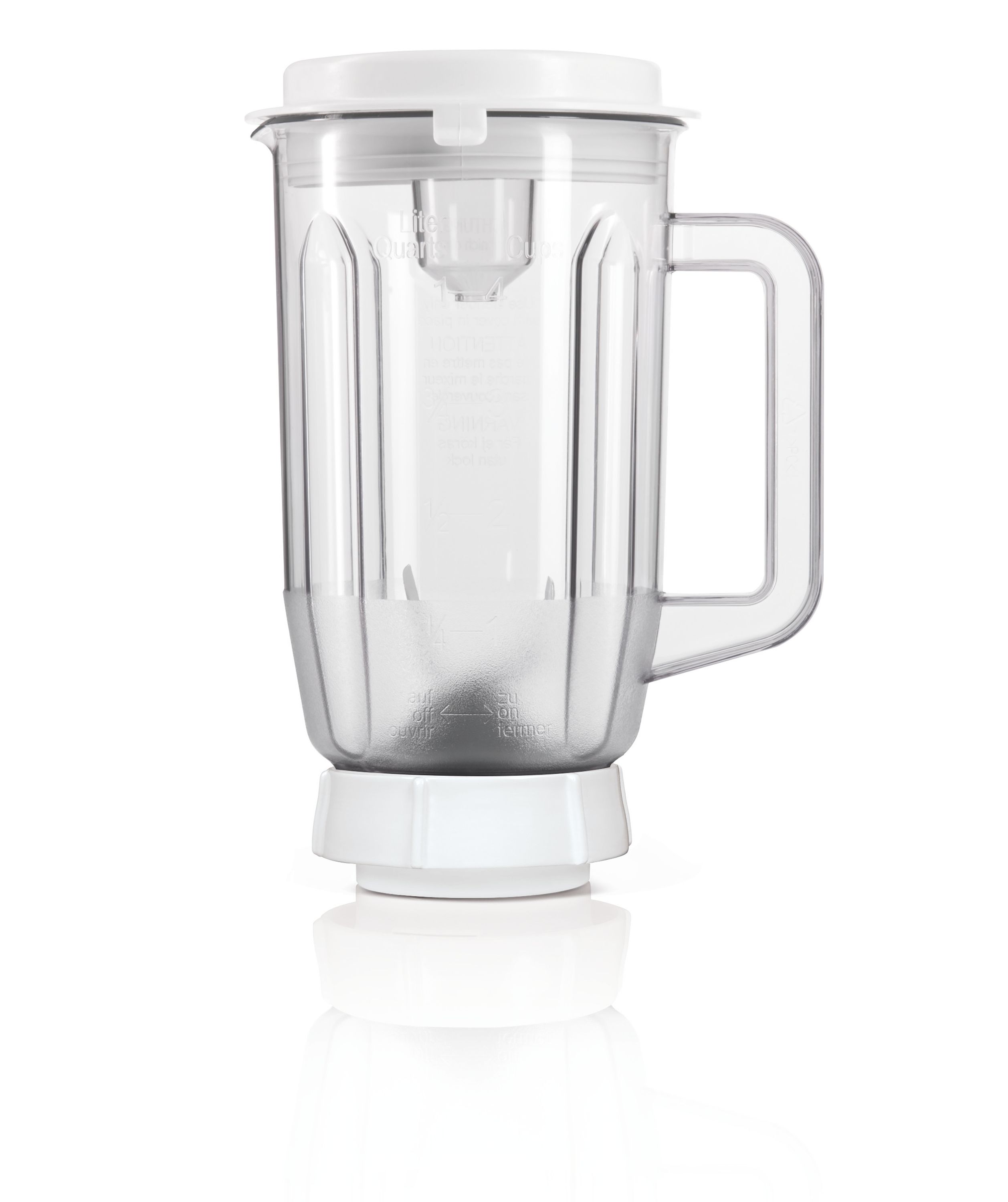 Capiciteit: 1.4 l Blenderkan met maataanduiding Deksel met trechter Geschikt om ijsblokjes en bevroren fruit fijn te maken (crushen)