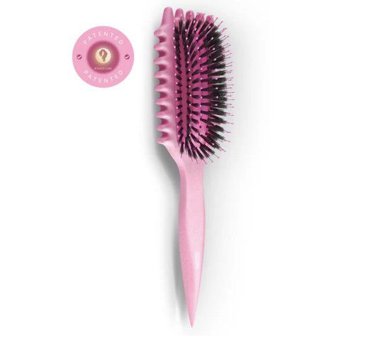 Bounce Curl Define EdgeLift Brush, de enige echte originele, op maat gemaakte, gepatenteerde borstel gemaakt van biogebaseerde materialen, speciaal ontworpen om uw golven, krullen en zeer sterk krullend haar te verbeteren. Deze innovatieve 3-in-1-borstel maakt je haar niet alleen moeiteloos glad, maar creëert ook goed gedefinieerde lokken en voorkomt pluizen.
