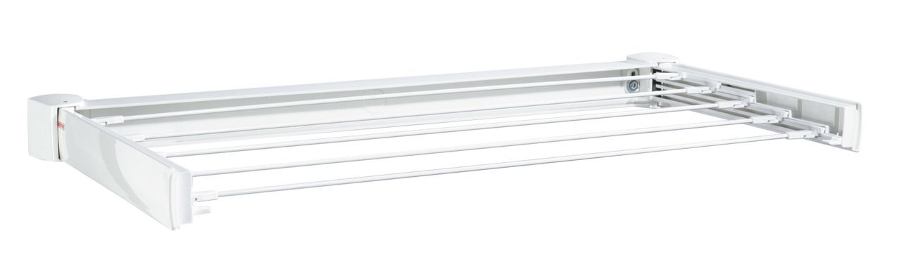 Deze wanddroger is ideaal als handdoekrek of voor het ruimtebesparend drogen van wasgoed: het Telegant 30 Protect wanddroogrek van Leifheit. Want wie dit opvouwbare wasrek koopt, kan het elk moment in- en uitklappen. Het hangend droogrek is uitgerust met vijf droogstaven, elk 60 cm lang. Zo biedt het Leifheit droogrek een drooglengte van 3 m. Omdat het montagemateriaal al bij de levering van het Leifheit Telegant 30 Protect wanddroogrek is inbegrepen, kan deze direct worden geïnstalleerd - bijvoorbeeld in de badkamer of op het balkon. Het wandwasrek is geschikt voor wandmontage en is met zijn afmetingen van 72 cm breedte tot 37 cm diepte, een bijzonder compact model.