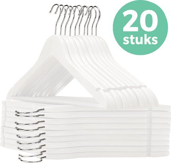 LifeGoods Kledinghangers - Broekhanger - Hardhout - Wit - 20 Stuks - Hangers voor huisdierenkleding