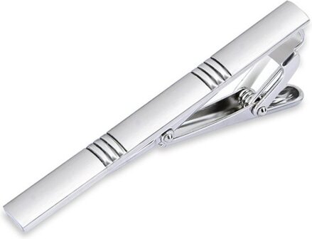 1x Dasspeld - Stropdas Clip - Shiny Tie Clip - Zilver - Gestreept
