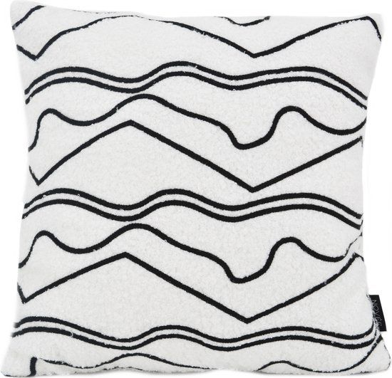 Hou je van een abstracte stijl dan past deze bouclé kussenhoes met gestreept dessin prachtig in jouw interieur.