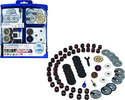 De hoogwaardige accessoiresets bevatten een assortiment van de best verkochte accessoires. Elke set bevat een assortiment originele Dremel accessoires die, afhankelijk van de accessoireset, kunnen worden gebruikt voor het uitvoeren van meerdere toepassingen zoals slijpen en polijsten van de meest uiteenlopende materialen. Met elke accessoireset krijgt u uitstekende waar voor uw geld.