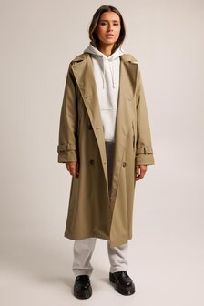 Joan is de trenchcoat voor de regen, een tijdloos model tegen weer en wind. Met een eigentijds ontwerp, creëert deze jas een flatterend silhouet door middel van een tailleceintuur. Deze jas beschikt over een verstelbare capuchon met kaprand door het bijb
