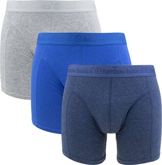 Bamboo Basics 3P boxers rico grijs & blauw - M - Mannen - 68% bamboe viscose, 28% organisch katoen, 4% elastaan - Lange pijpen
