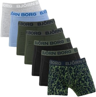95% Katoen | 5% elastaan, Elastische katoenen, jongens boxershorts 7-pack van Bjorn Borg in verschillende kleuren en printen