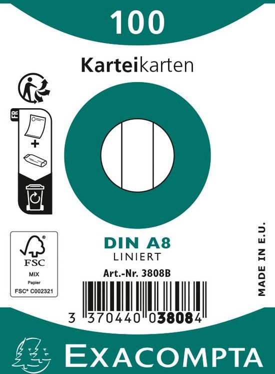 Exacompta Steekkaarten - 5.5 x 7.4 cm - Pak van 100 - Wit - Kaartbestanden