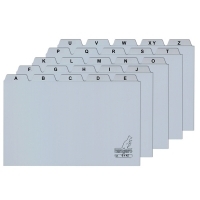 De grijzeKangaro kaartenbakkaarten zijn geschikt voor gebruik in A5-formaat systeemkaartenbakken en hebben een afmeting van210 x 150/160 mm. Deze tab kaarten voor uw kaartenbak zijn eenzijdig bedrukt met de letters A tot en met Z. De set bestaat uit 25 tabkaarten (X en Y staan samen op 1 tab) - Kangaro tabkaart grijs 210 x 150/160 mm A5 (1 set)