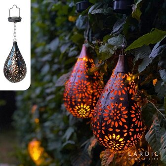 Lardic Solar Hangende Tuinlamp - Zonne-energie Buitenlamp - Modern Design - Metaal - 43cm - Kamperverlichting en -lantaarns