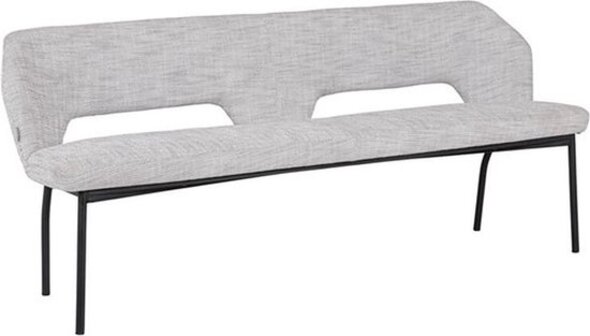 Deze stijlvolle eetkamerbank komt uit de MUST Living collectie. De bank is gemaakt van een grijze stof. Het onderstel is gemaakt van zwart gelakt metaal.