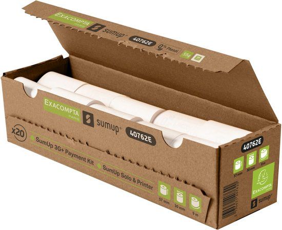 Verken een nieuwe standaard op het gebied van transactie-efficiëntie en milieubewustzijn met de zorgvuldig vervaardigde thermische papierrollen van Exacompta. Speciaal ontworpen om naadloos aan te sluiten op SumUp-terminals, waaronder het SumUp 3G+ Payment Kit en SumUp Solo & printer, zetten onze rollen nieuwe normen op het gebied van compatibiliteit en duurzaamheid.