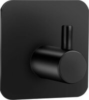 Zwarte vierkante zelfklevende RVS wandhaak voor jassen, handdoeken e.a., zonder boren, voor muur- en glasbescherming.