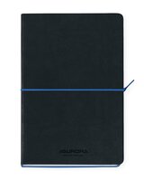 Aurora Soft Touch Notebook Tesoro A5 zwart, blauwe elastieksluiting. De chique variant onder de notebooks!