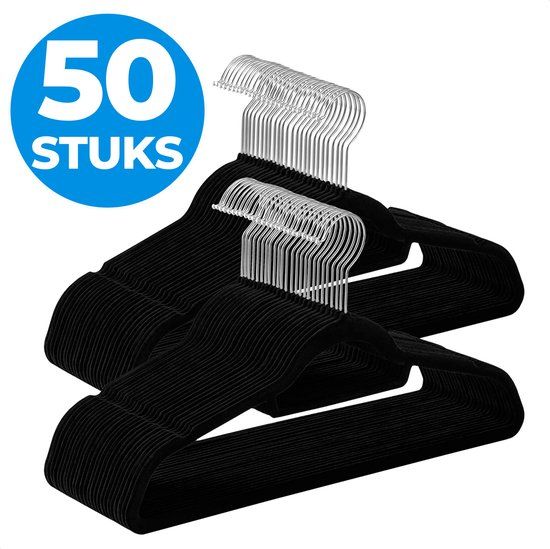 ACAZA Kledinghangers - 50 stuks - Zwart - Anti-slip - Fluweel/Velvet - Kleerhangers