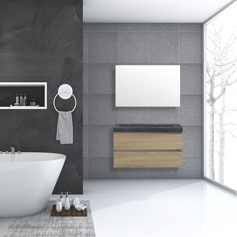 Badkamerplanet Badkamermeubel Trento Greeploos Natuursteen 100 cm Light Wood - Kleine buffetten