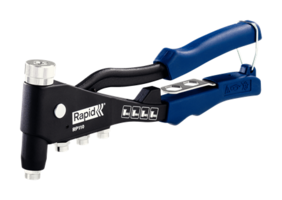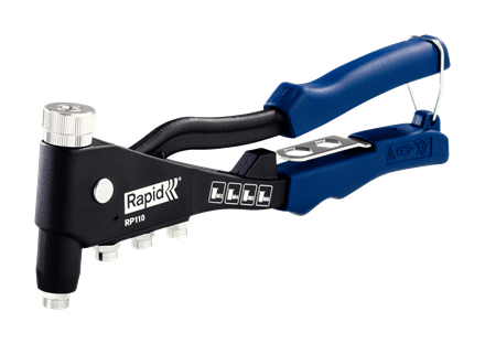 RP110 Rivet Nut Pliers\nThe RP110 is a rivet nut insertion tool designed to provide a solution when fastening materials together without access to the rear to tighten a bolt. With this tough, die cast aluminium tool, you can insert M3, M4, M5 and M6 rivet nuts – internally threaded tubular rivets. Once in place, a screw is inserted into the rivet nut, allowing the two materials to be fastened securely without using a bolt – and unlike normal rivets which cannot be easily removed, rivet nuts allow for simple removal should this be required. Other features include a forged steel lever, hardened jaws for long lifetime and soft grip handle for optimal comfort.\n\n- For M3, M4, M5, M6 rivet nuts\n- Integrated wrench\n- Strong metal jaws\n- Soft grip handle