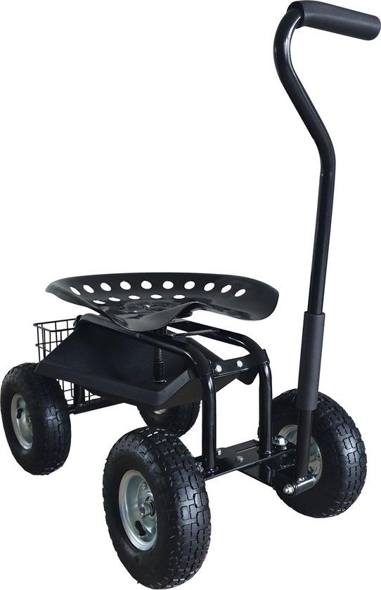 - Rijdende Tuinkruk Zwart met opbergruimte