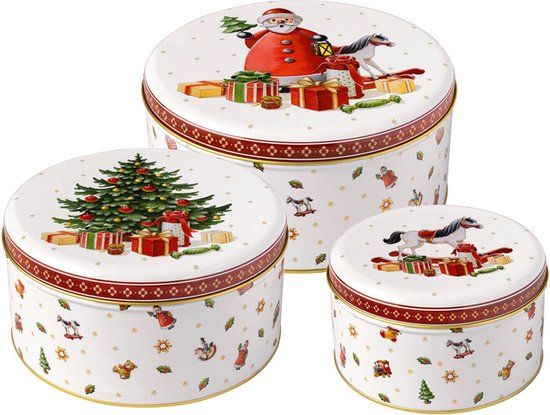 De gedetailleerde collectie is gericht op iedereen die zijn huis en tafel liefdevol wil aankleden tijdens de kersttijd. De drie prachtig versierde metalen blikken zijn ideaal voor het bewaren van koekjes en andere kleine voorwerpen. Verzeker u nu van uw favoriete kerstartikelen! 19,7 x 9 cm